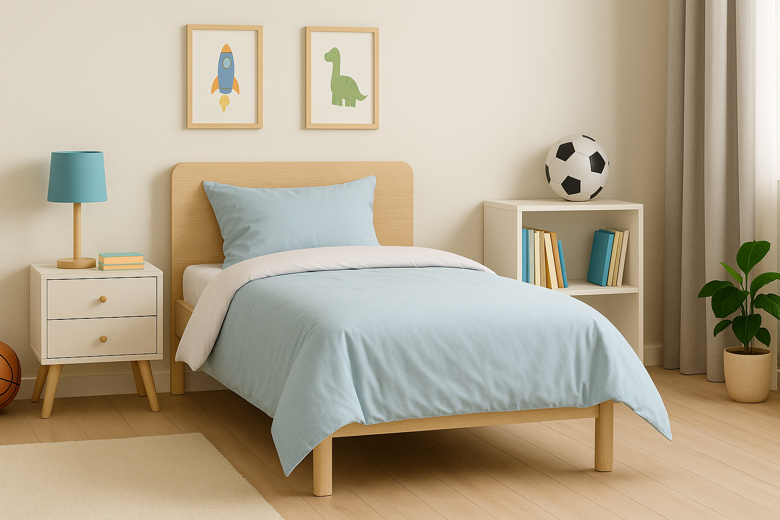 Dès que l’enfant passe d’un lit à barreaux à un lit « de grand » (généralement autour de 3 ou 4 ans), une couette 140x200 cm devient le choix idéal. Elle lui offre une bonne couverture sans être trop encombrante, tout en s’adaptant à un matelas de 90x190 cm ou 90x200 cm, très courant dans les chambres d’enfants.